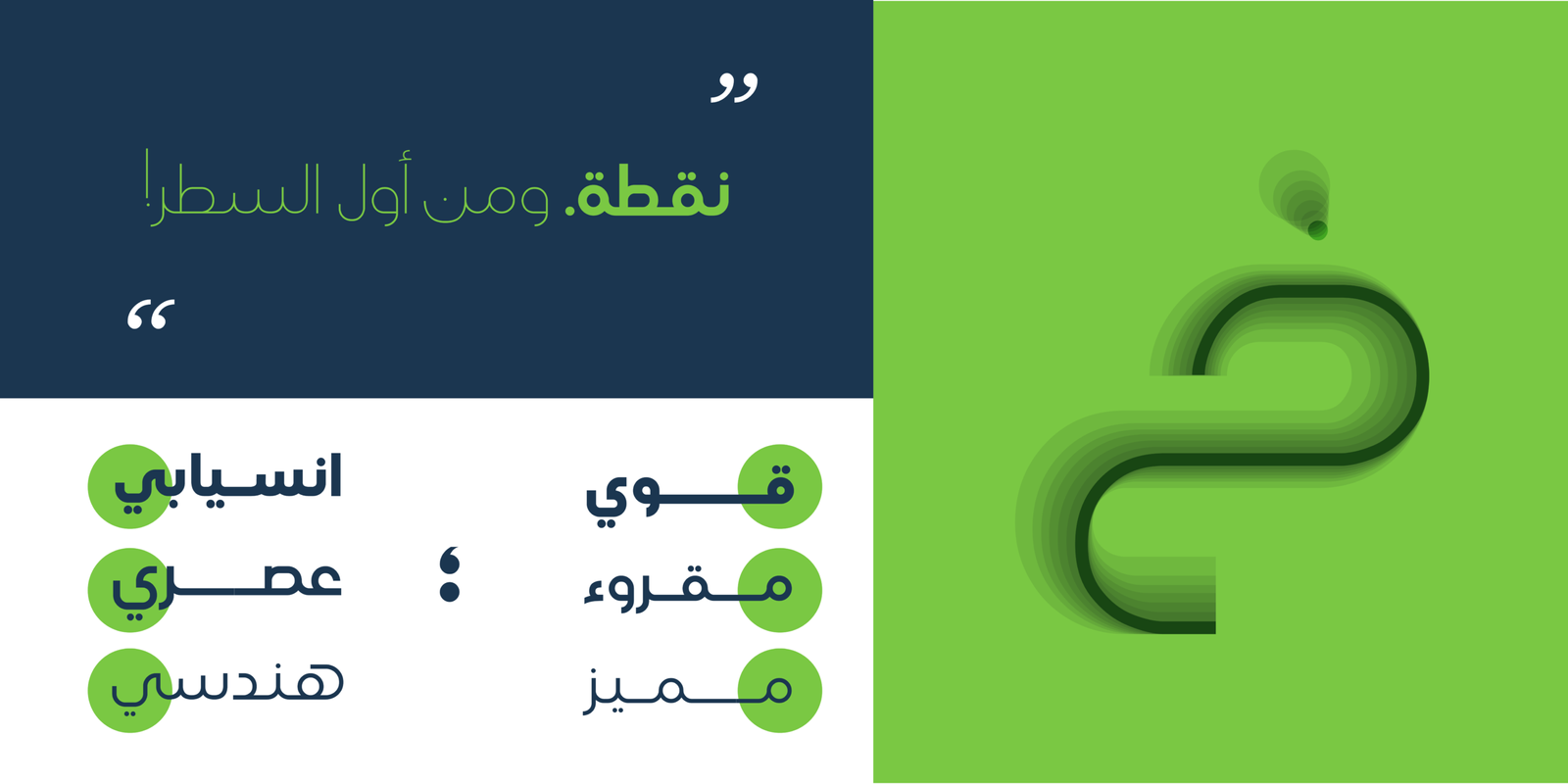AS NOQTA is a contemporary geometric Arabic font, drawn and constructed carefully Font design is inspired by the circl calligraphic style.